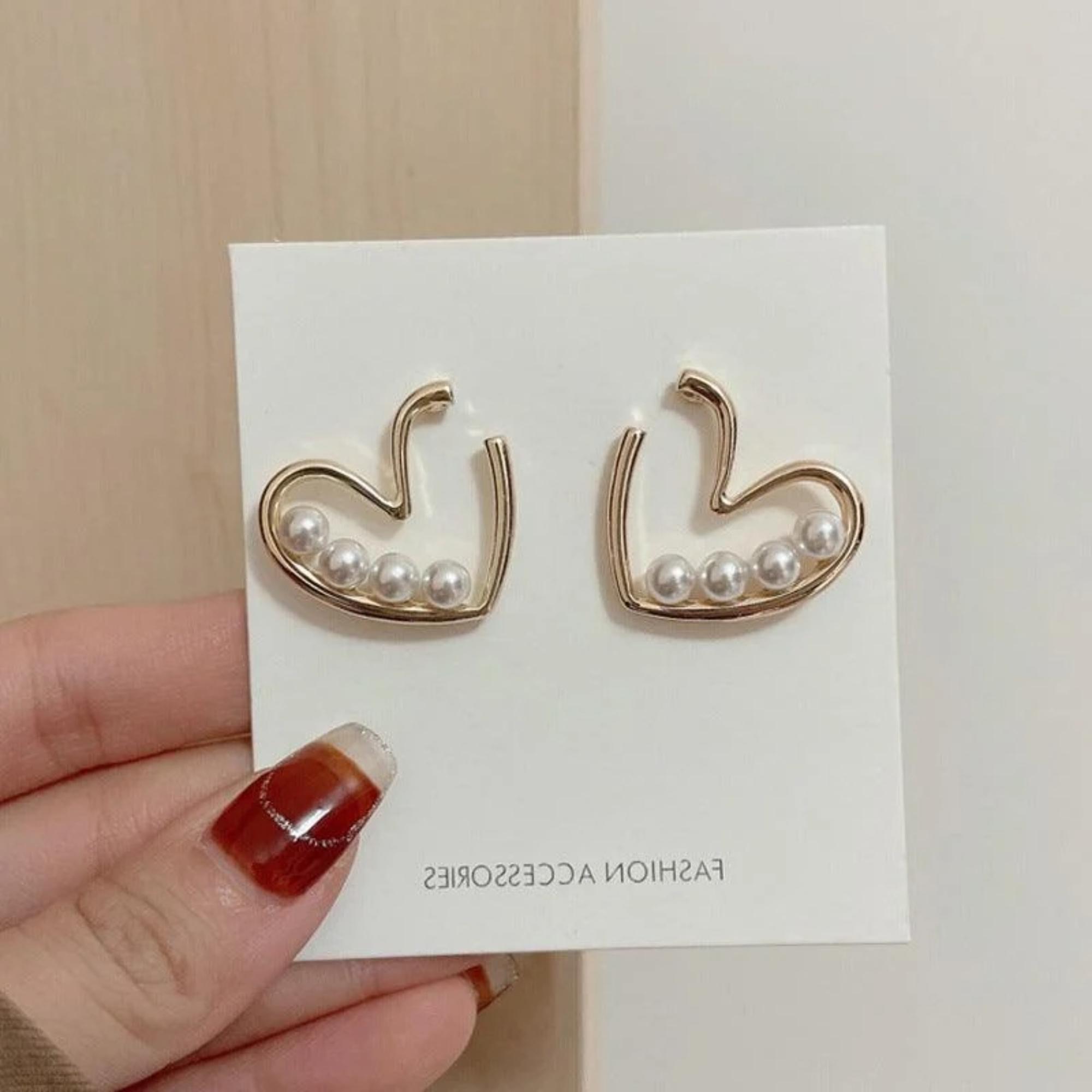 Enmode Fashion Jewellery presents the exquisite Cute Pearl Heart Stud Earrings – a dazzling designer pair that will make you shine like a star.