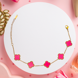 Add a touch of luck and elegance to your style with these Pink Clover Charm Bracelets. Beautifully gold-plated and designed to resist tarnishing, they offer lasting shine and charm. Perfect for girls and women, these bracelets blend delicate design with durable quality, making them ideal for everyday wear or special occasions. Embrace a timeless accessory that brings both beauty and meaning to your collection.