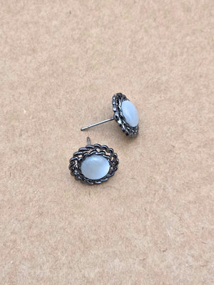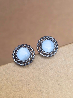 Add a touch of elegance to your everyday look with these stunning silver-plated stud earrings. Featuring a brilliant grey round stone at the center, encased in a beautifully twisted silver frame, these earrings combine classic design with a pop of vibrant color. Perfect for both casual and formal occasions, they offer timeless appeal with a contemporary twist. Their compact size makes them ideal for comfortable, all-day wear.