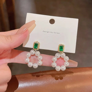 Enmode Fashion Jewellery presents the exquisite Green Square Crystal Zircon Pearl Dangle Earrings – a dazzling designer pair that will make you shine like a star. Perfect for women and girls who love trendy, elegant jewelry, these earrings are crafted to enhance any outfit and add glamour to parties, weddings, and special occasions.