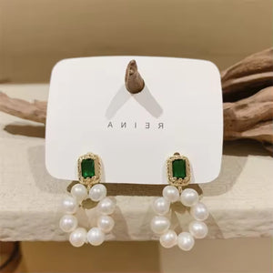 Green Crystal Zircon Pearl Stud Earring for Women and Girls