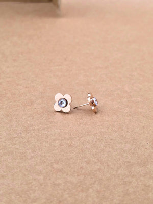 These charming flower-shaped stud earrings feature a radiant gold-tone finish with a central sparkling stone that adds a touch of elegance. Perfect for everyday wear or special occasions, the earrings boast a chic and minimalist design that will complement any outfit. Their floral design brings a youthful and refreshing appeal, making them a versatile addition to your jewellery collection.