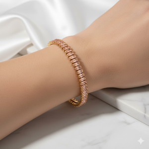 Gold-Plated Bracelet with Rose Pink Crystal Stones