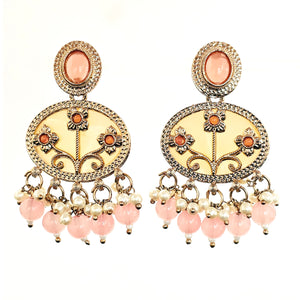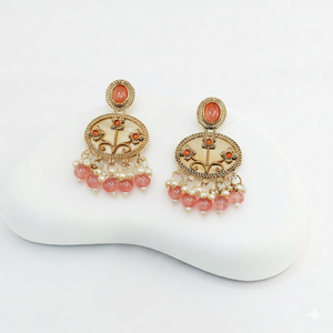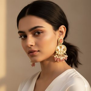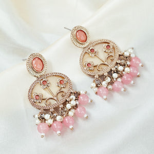 Gold Plated Pink Bead Chandbali Earrings for Women