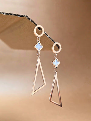 Rose Gold Triangle Drop Earrings with Clover Accent