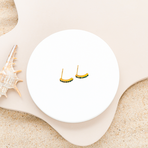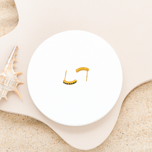 Delicately crafted with a green diamond centerpiece, these gold-plated mini studs add a touch of elegance to any outfit. The anti-tarnish finish ensures lasting shine and durability, making them perfect for everyday wear or special occasions. Their subtle size complements your style with understated charm and vibrant color.