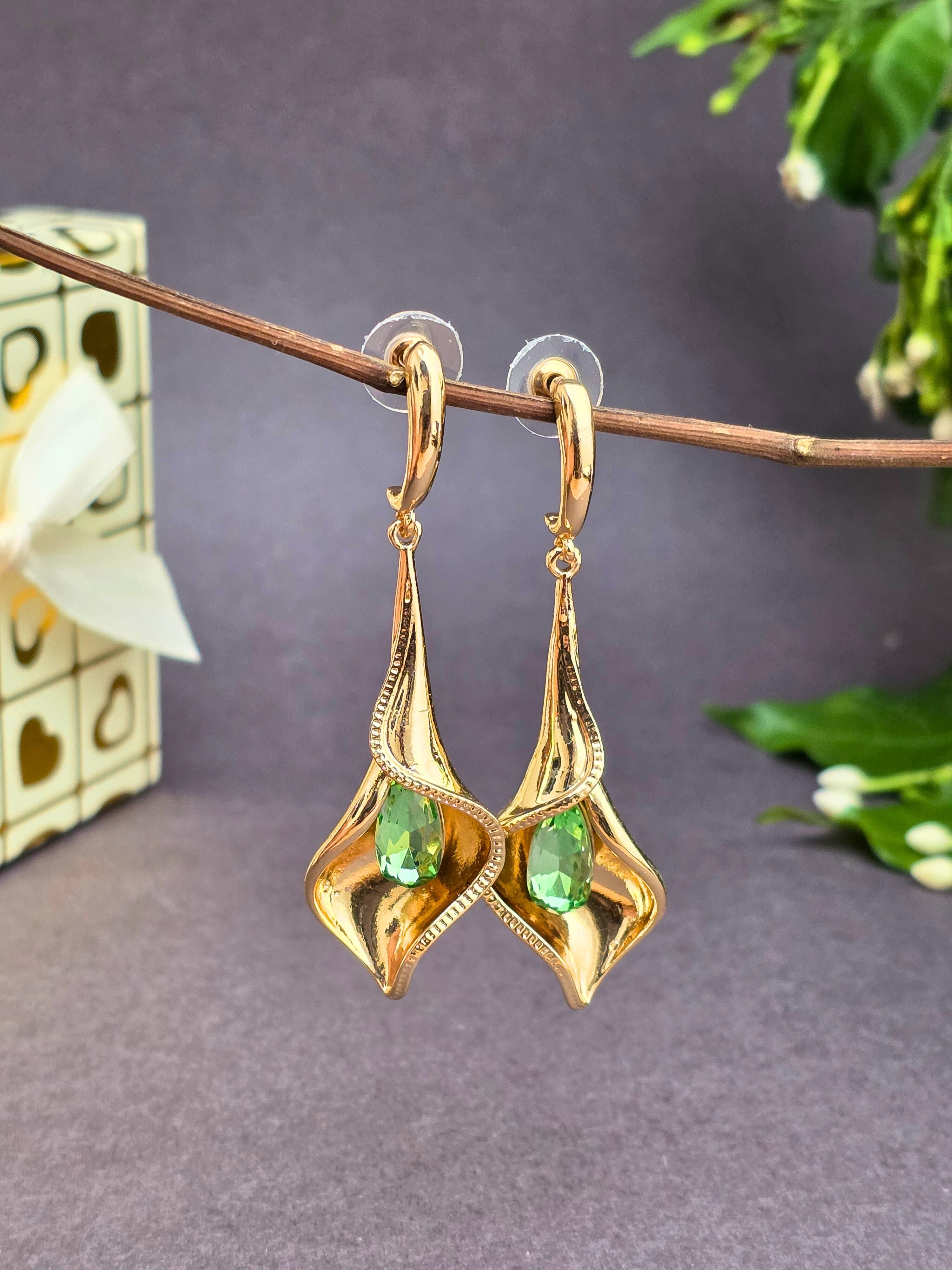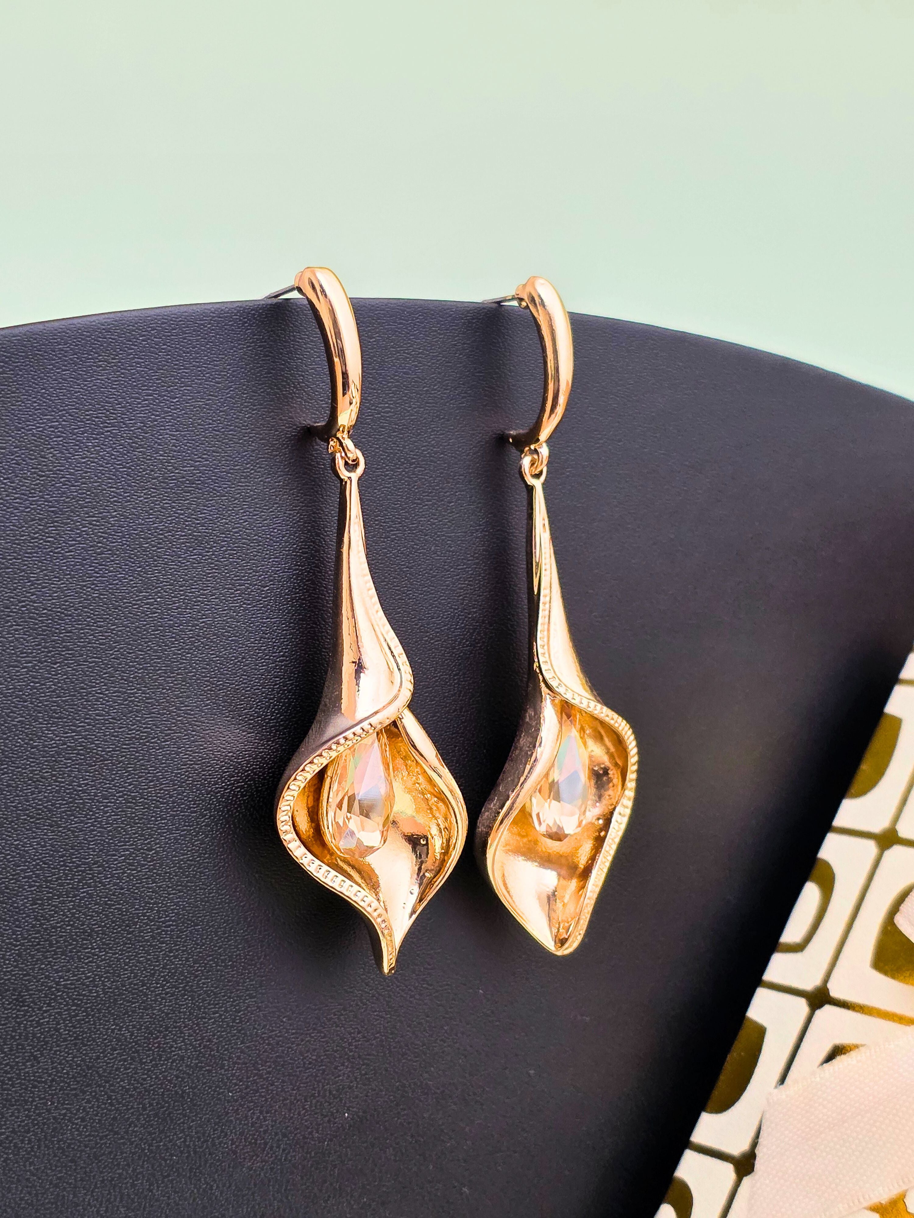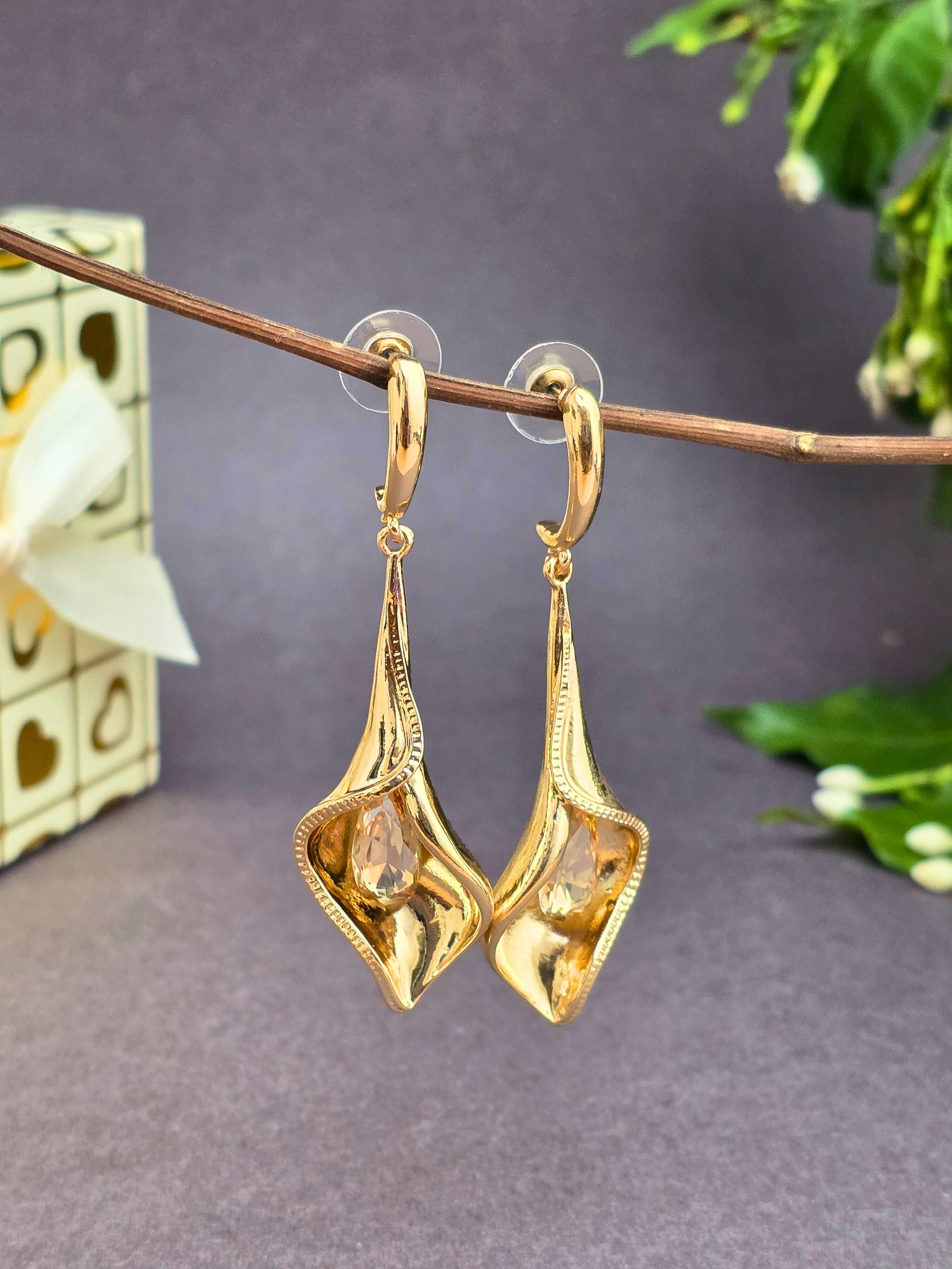 Elegant & stylish gold hanging earrings! Perfect for adding a bold and classic touch to your festive or party look. ✨