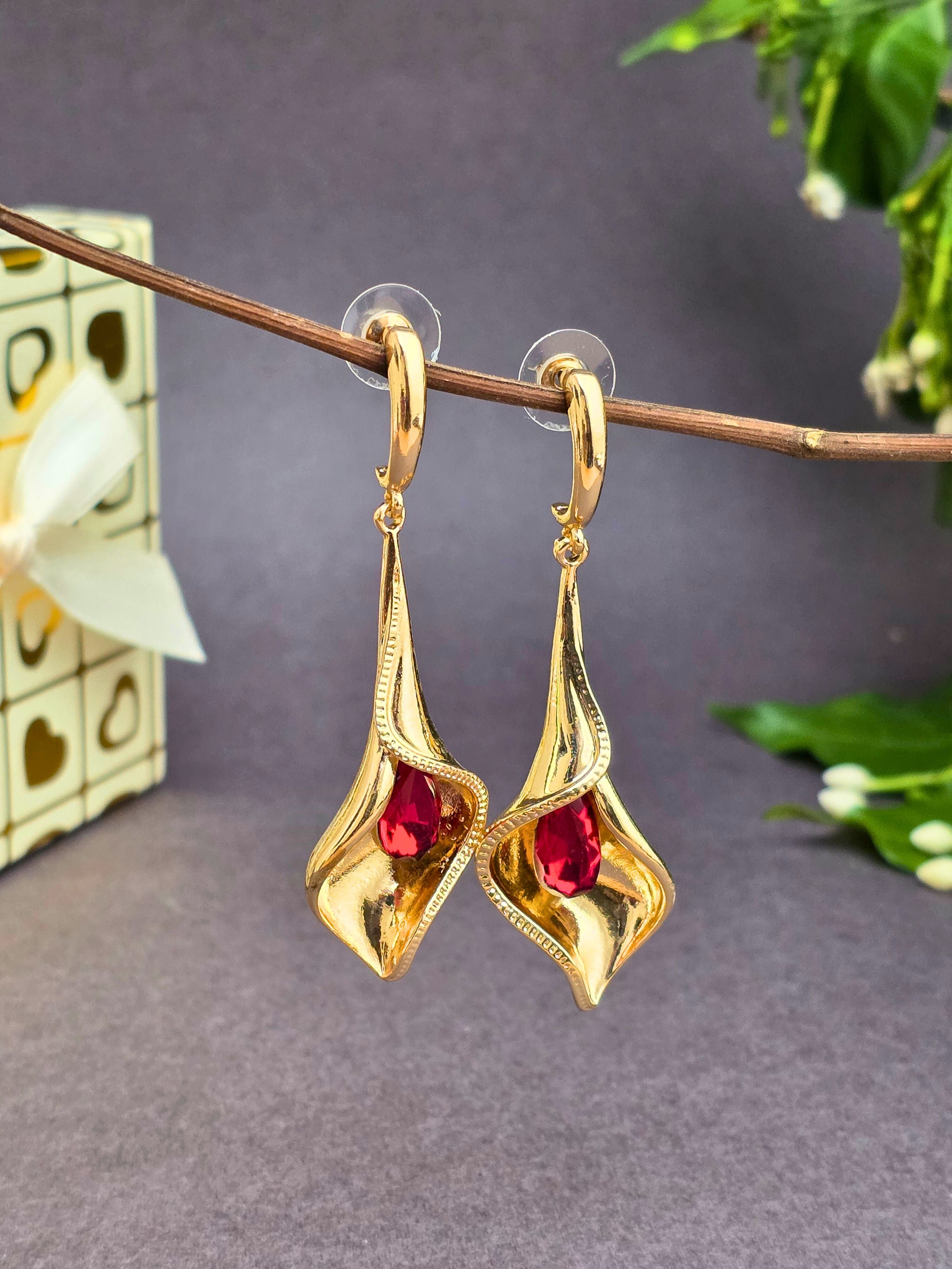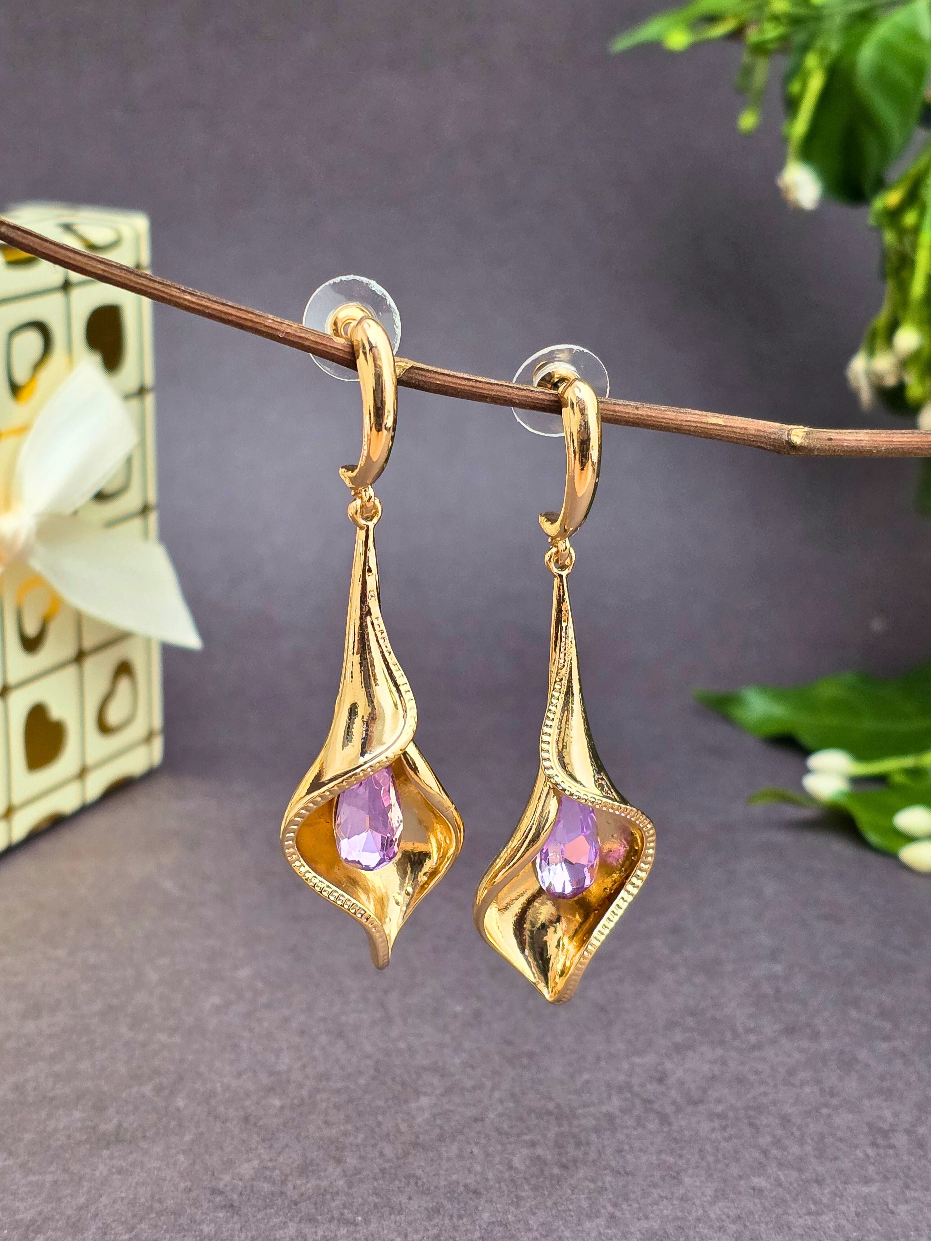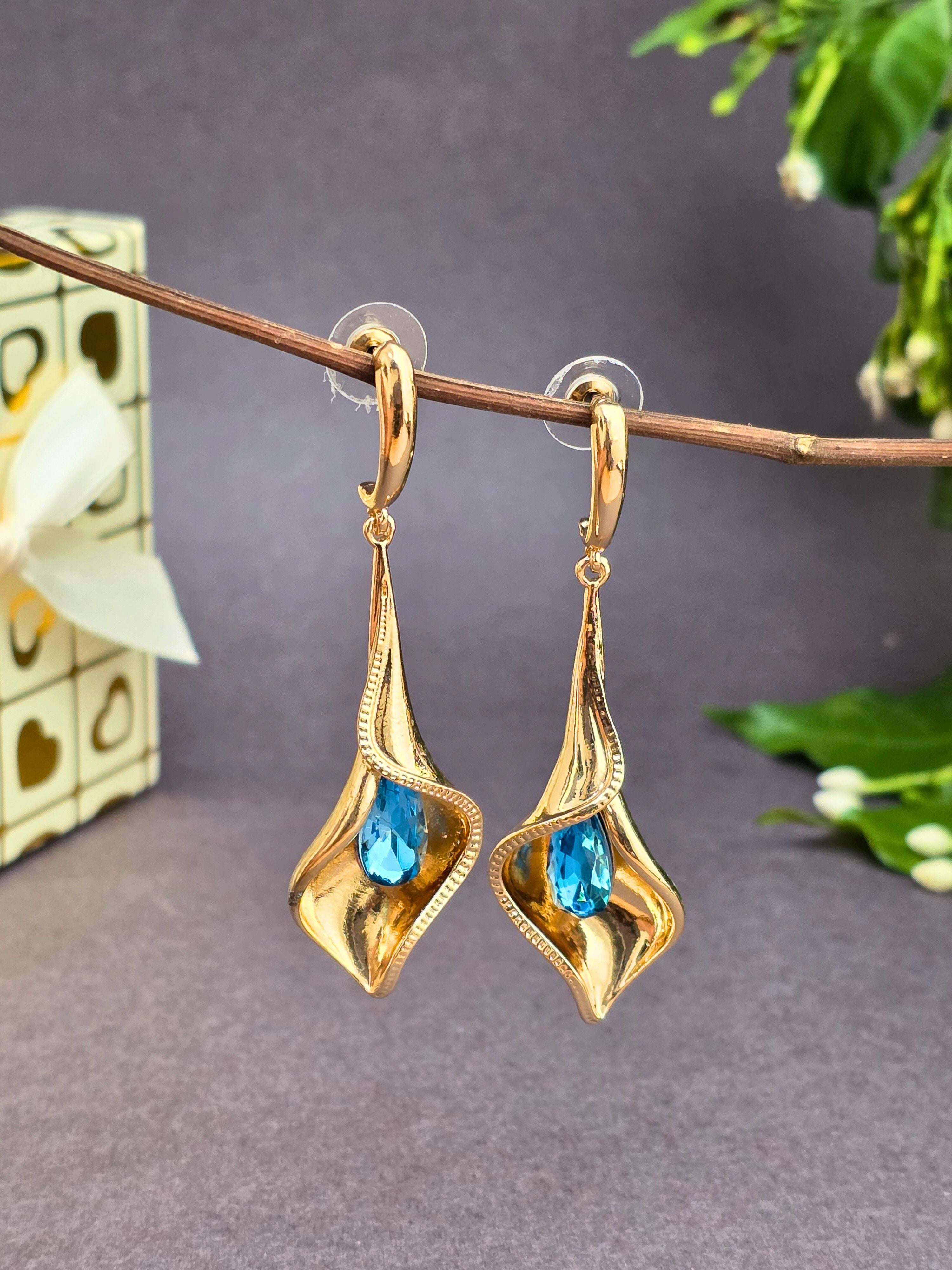 Elegant & stylish gold hanging earrings! Perfect for adding a bold and classic touch to your festive or party look. ✨