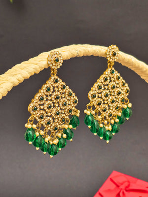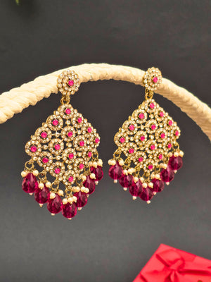 ✨ Timeless and graceful gold-plated earrings with pearl alloy danglers, ideal for parties, weddings, and festive outfits.