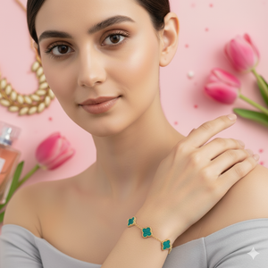 Add a touch of luck and elegance to your style with these Green Clover Charm Bracelets. Beautifully gold-plated and designed to resist tarnishing, they offer lasting shine and charm. Perfect for girls and women, these bracelets blend delicate design with durable quality, making them ideal for everyday wear or special occasions. Embrace a timeless accessory that brings both beauty and meaning to your collection.