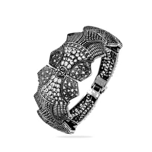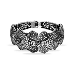 Intricately Designed Oxidized Silver Ethnic Bangle Bracelet