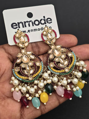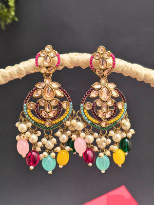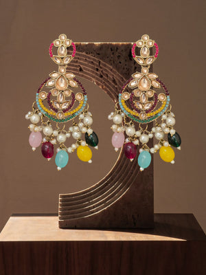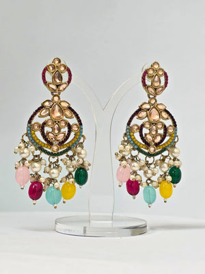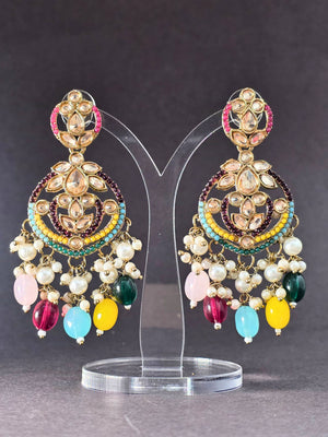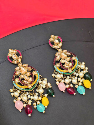 Mehandi Finish Multicolour Pakistani Kundan Premium Quality Earrings