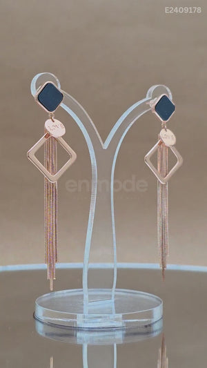 Square Drop Earrings Rose Gold Earrings with Love Charm