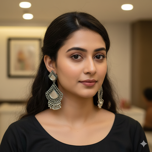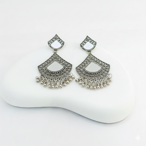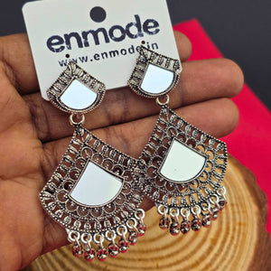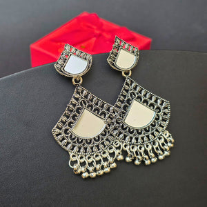 Oxidized Silver Plated Mirror Drop Jhumki Earrings for Girs and Women