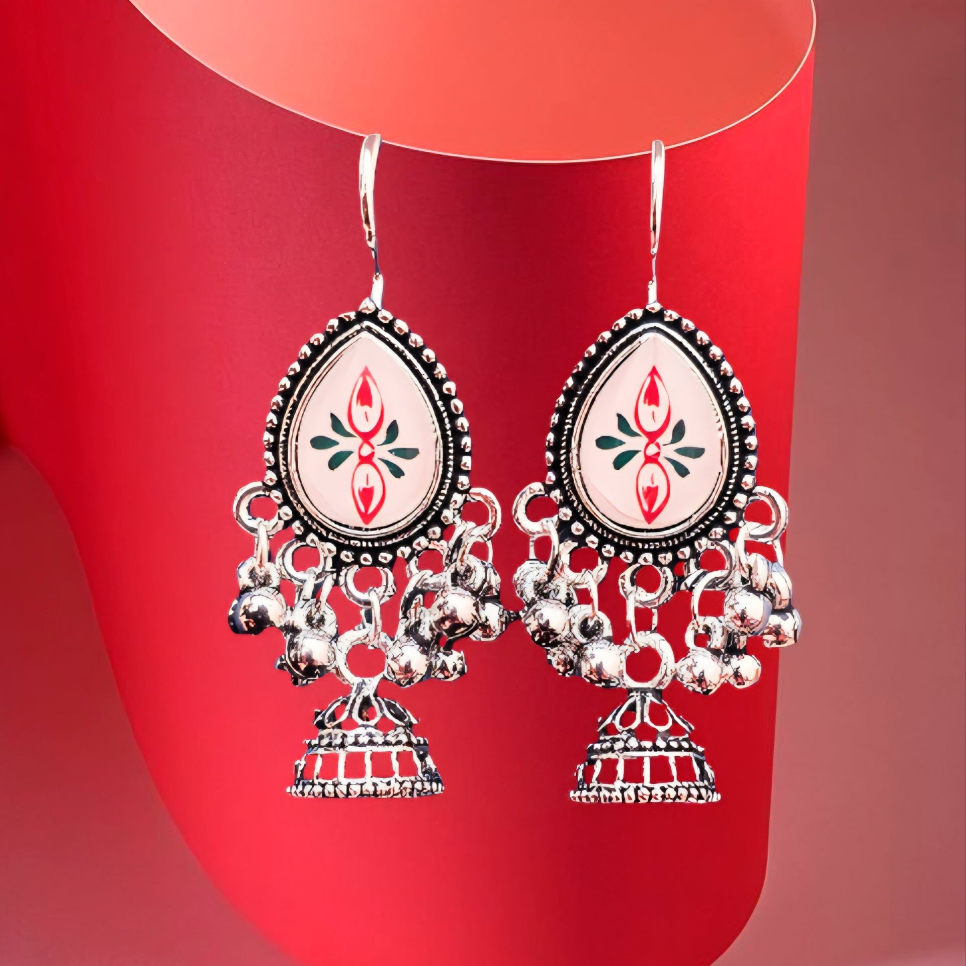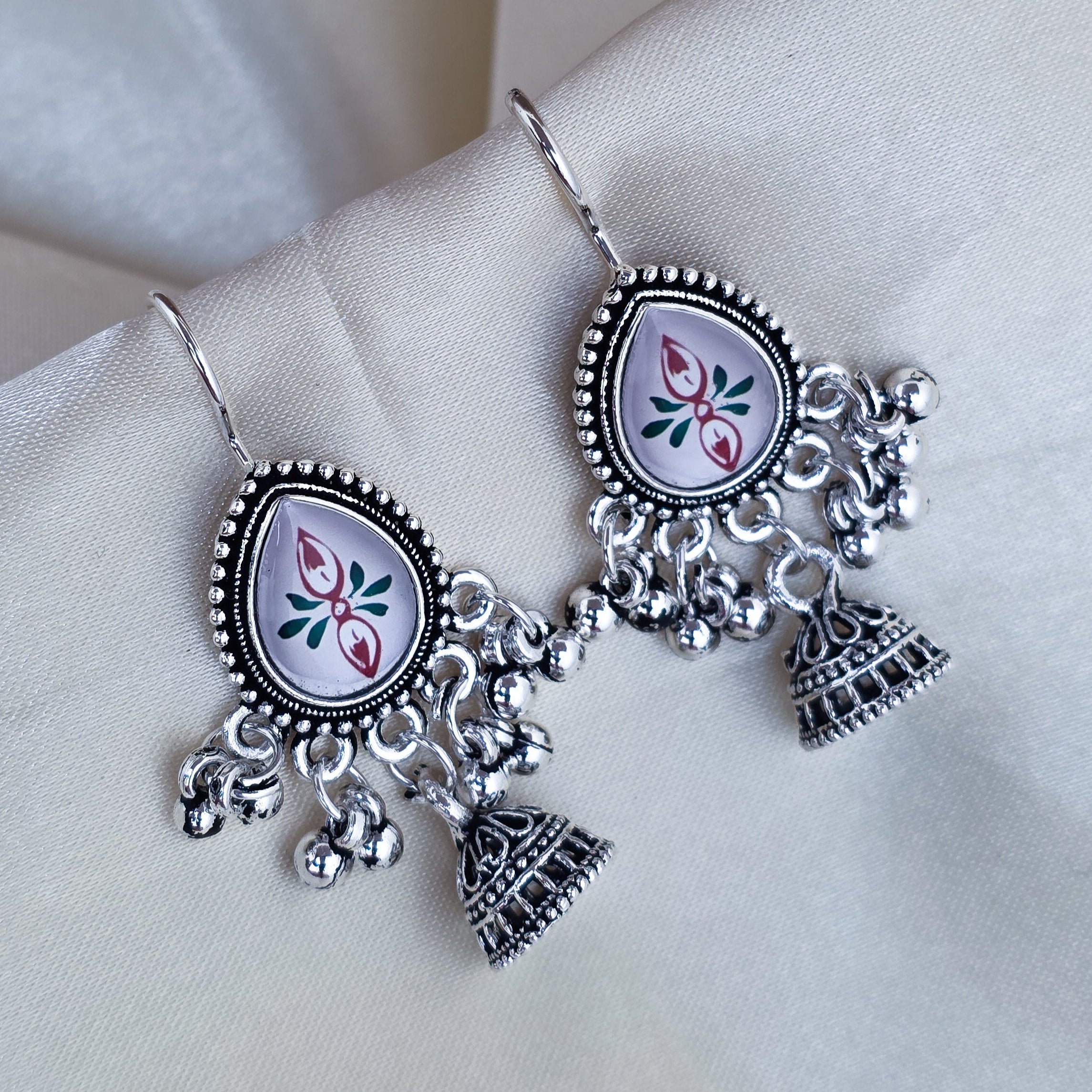 Oxidized Silver Plated Peacock drop earrings for girs and women
