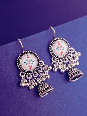 Oxidized Silver Plated Peacock drop earrings for girs and women