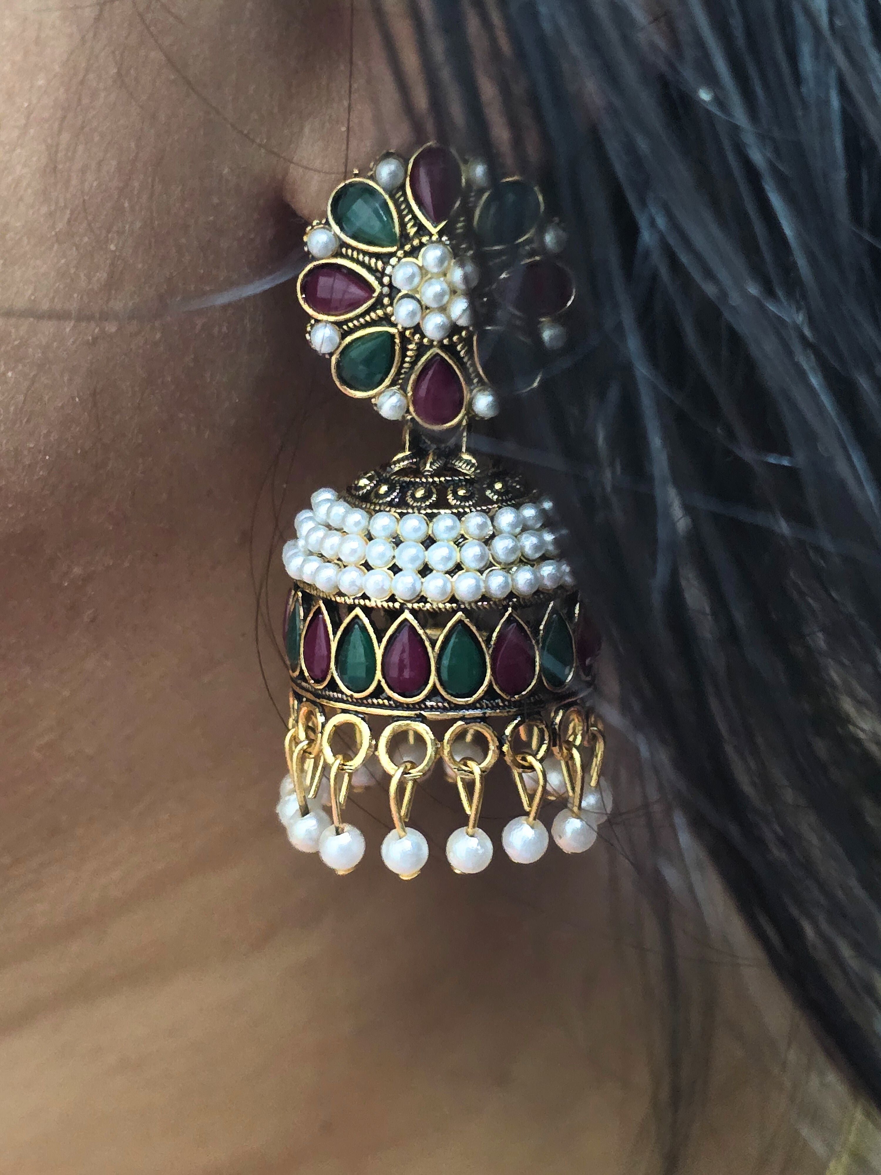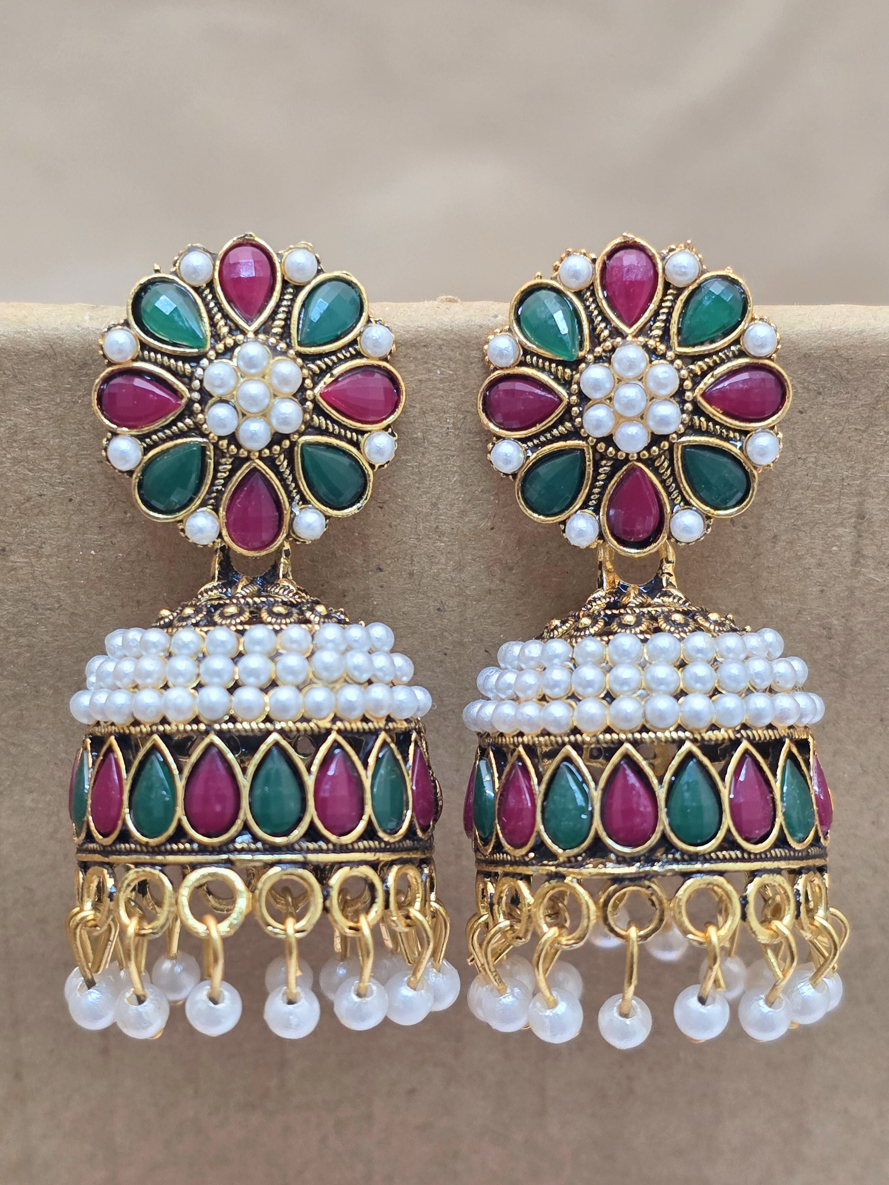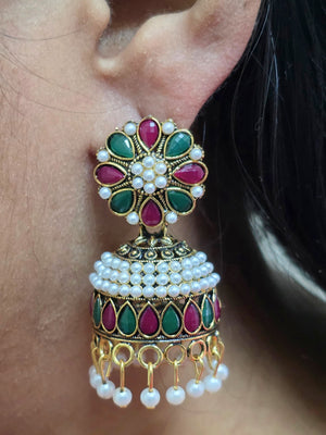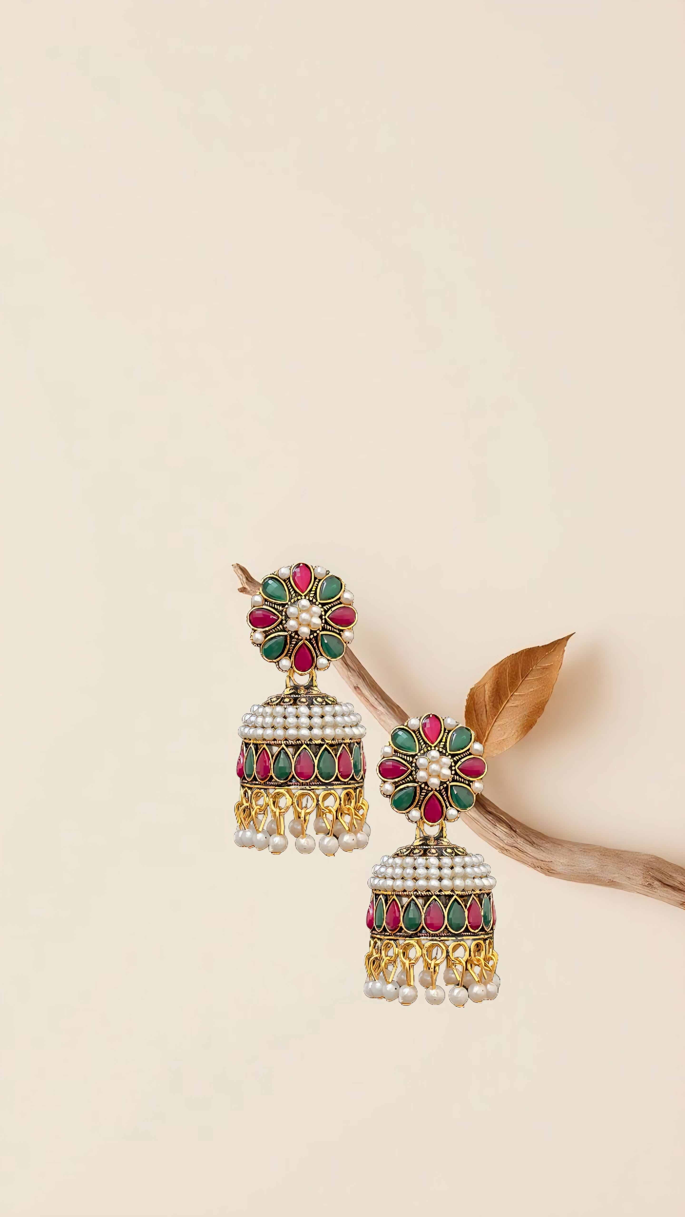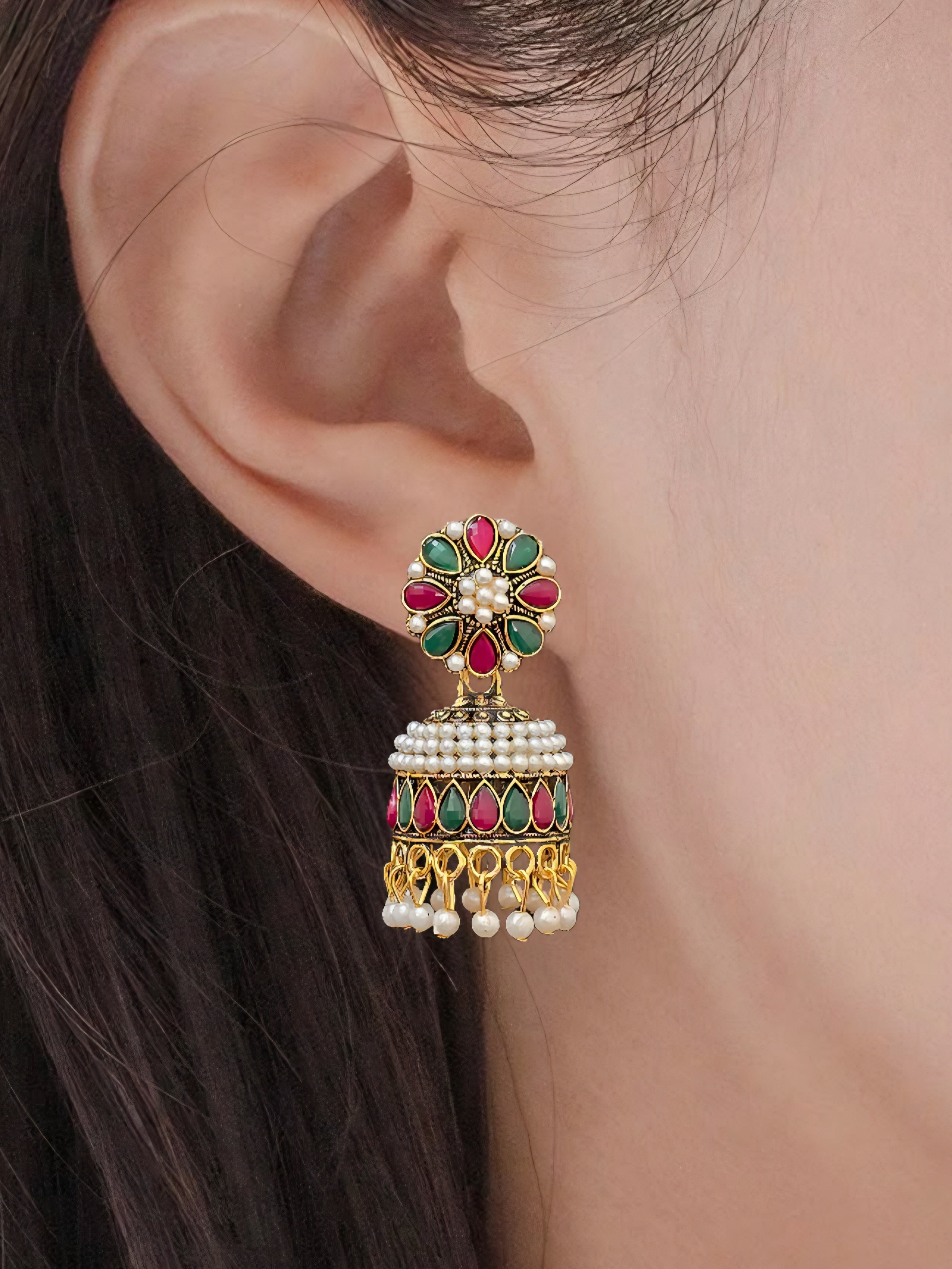 Pearl-Embedded Jhumka Earrings for Women and Girls (Wedding & Engagement Jewelry)