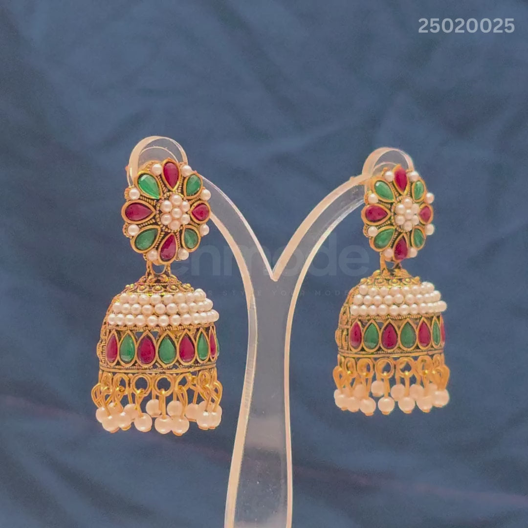 💖 Timeless elegance with a royal charm! These pearl-embedded jhumka earrings feature a classic design that enhances bridal, engagement, and festive looks with grace. Lightweight and comfortable, perfect for all-day wear! ✨