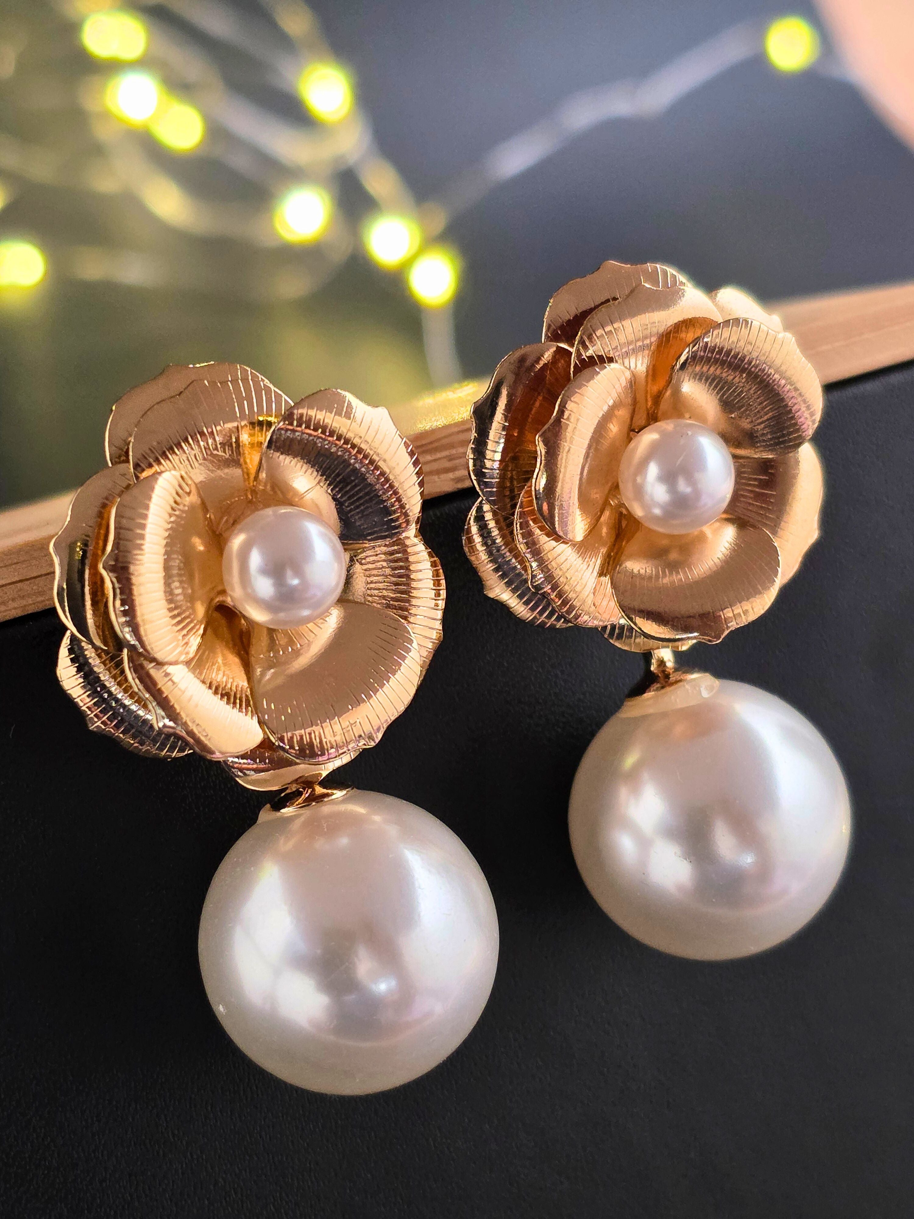 🌹 Elegant rose flower design with pearl accents! These pearl-studded earrings with delicate pearl hangings add a touch of grace and charm to any outfit. Perfect for festive, party, or daily wear. ✨