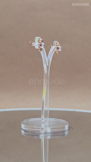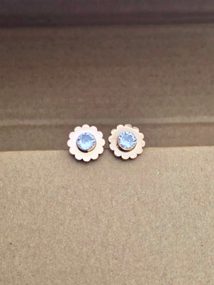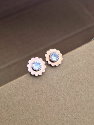 Rose Gold Floral Stud Earrings with Clear Crystal Center
