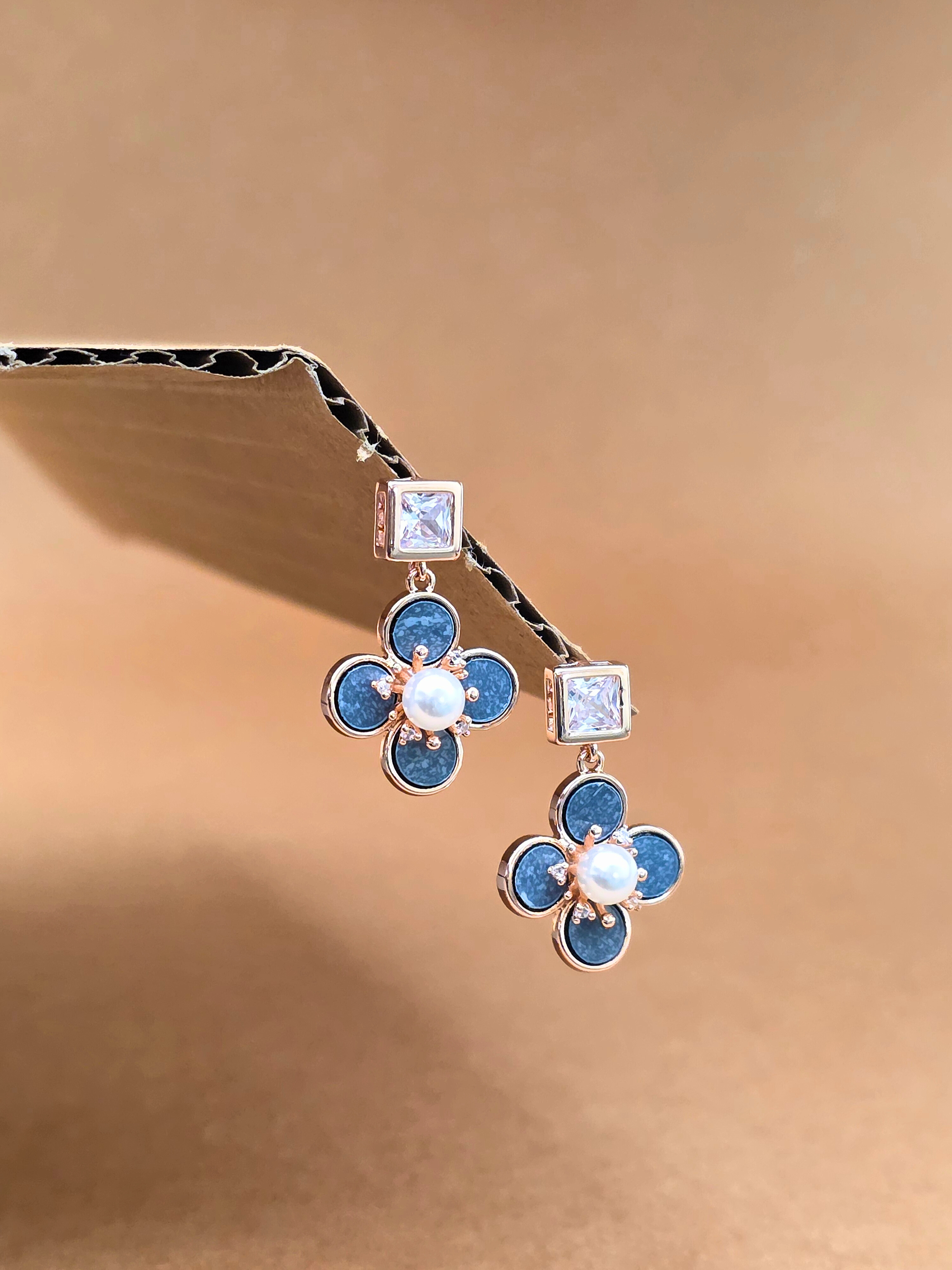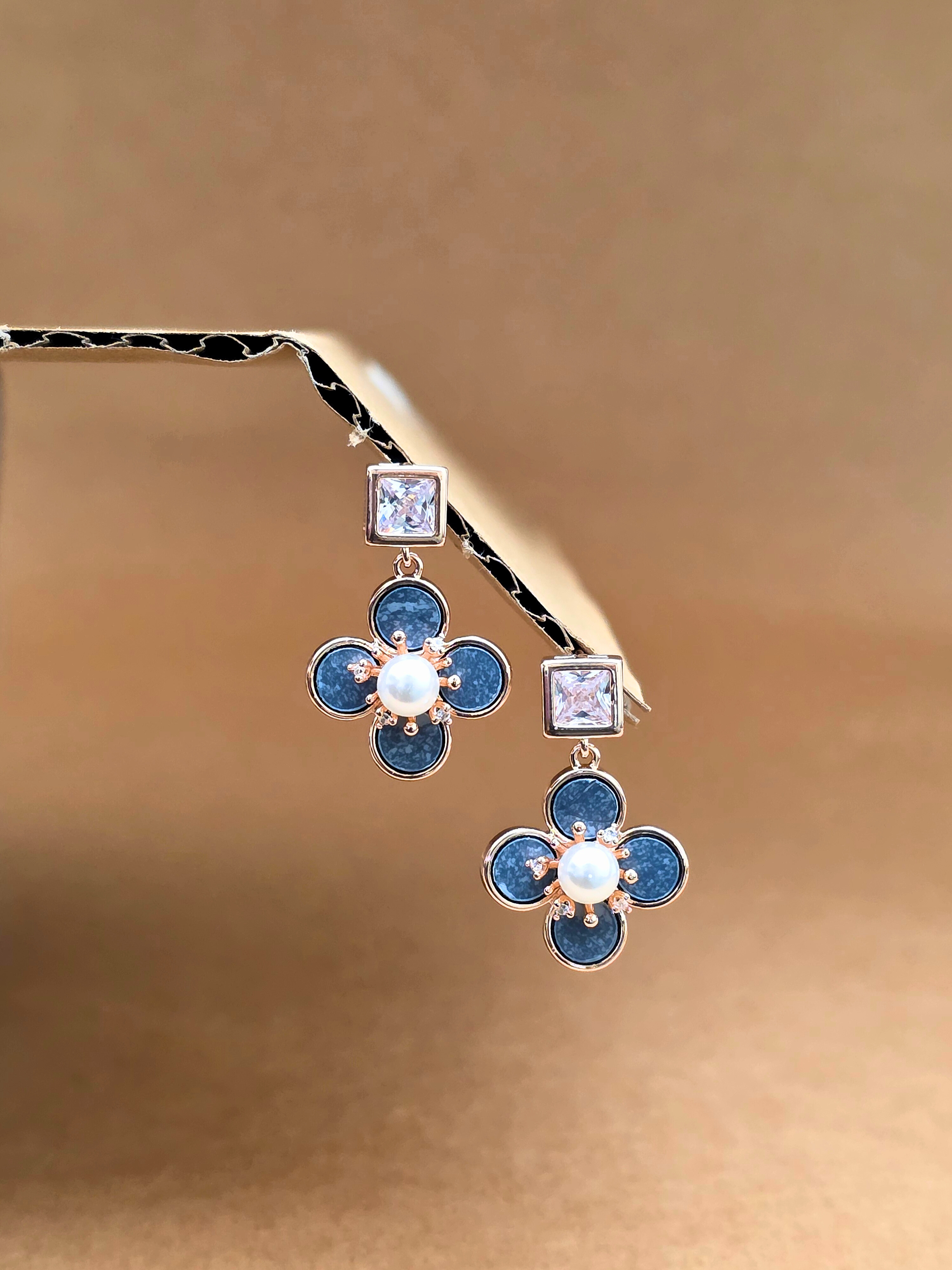 Shape: Flower-shaped drop with square cubic zirconia stud.