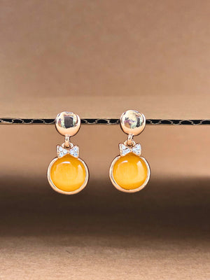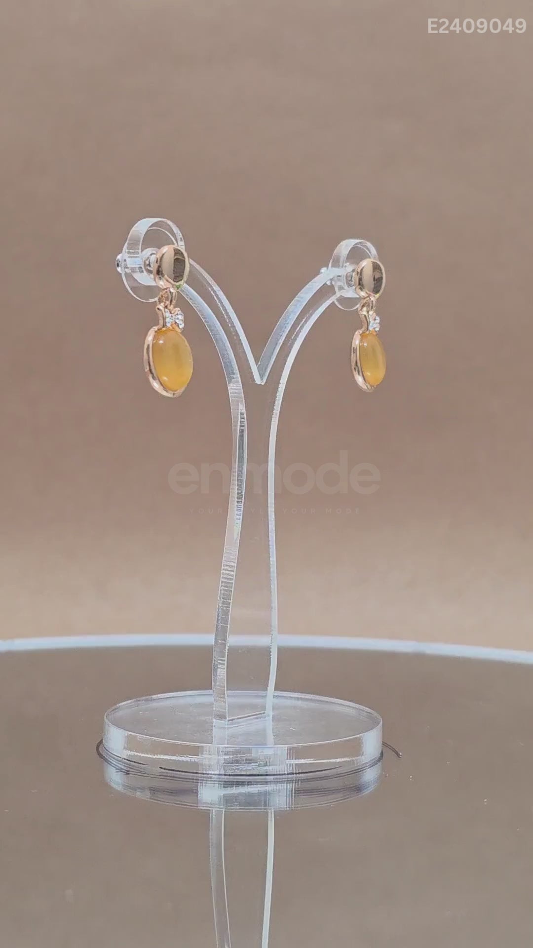 Rose Gold-Plated Dangle Earrings with Orange Cats Eye Stone