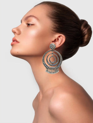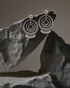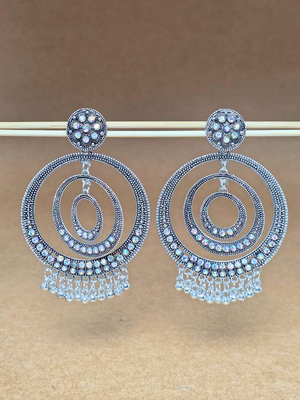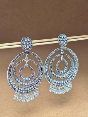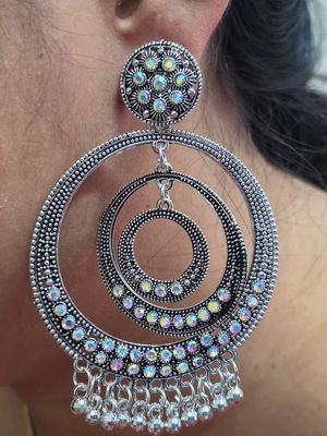 ✨ A perfect mix of classic elegance and bold style! These oxidized silver big Chandbali Jhumka earrings are made from premium alloy, ideal for festive and wedding looks. Lightweight and stylish, they add a royal touch to any outfit. 💖