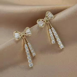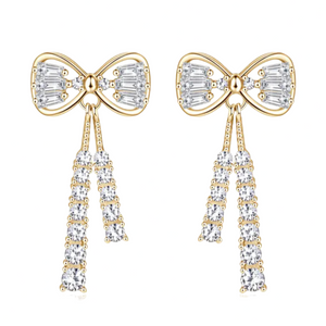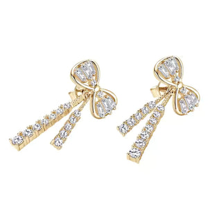Enmode Fashion Jewellery presents the exquisite Crystal Bowknot Cubic Zirconia Drop Earrings – a dazzling designer pair that will make you shine like a star.
