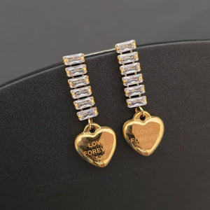 18k Gold Plated Stainless Steel Heart Drop Earring